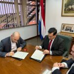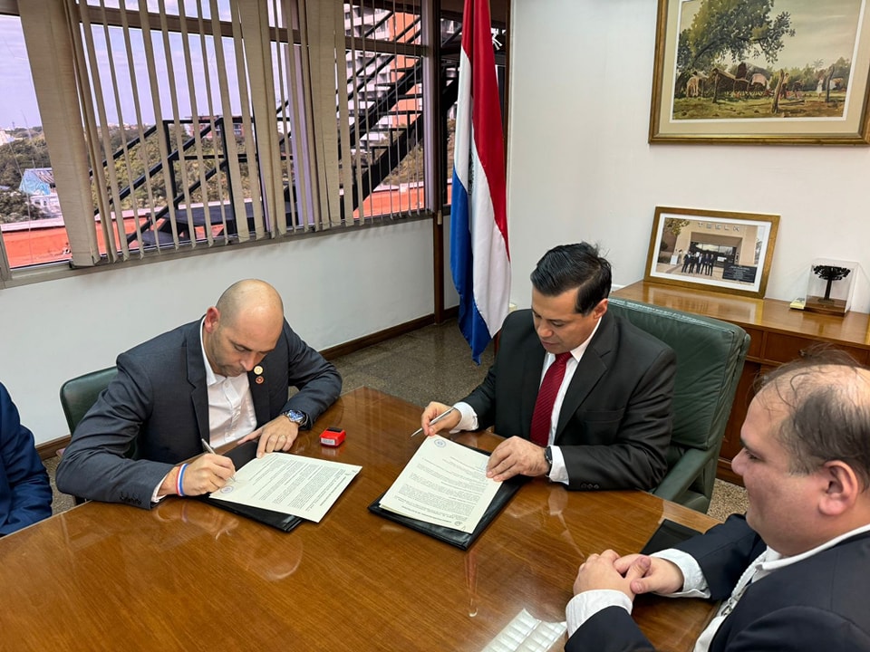 La firma del documento estuvo a cargo del presidente de la ANDE, Ing. Félix Sosa, y el Ejecutivo Municipal de Cambyretá, el Lic. Jaime Hinterleitner Schneider. Este importante evento contó con la presencia de concejales municipales y del director de Gabinete de la ANDE, el Ing. Alan Achar.