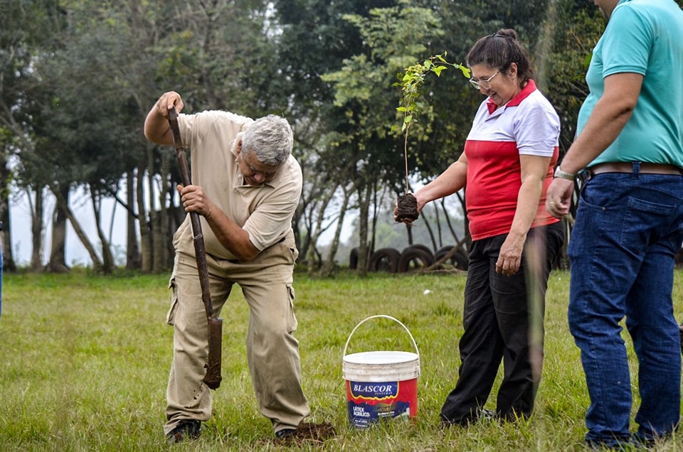 Esta mañana se llevó adelante un importante trabajo de plantación de árboles nativos, y frutales en la plaza del Barrio Tacuarí, del cual participó el propio intendente Jaime Hinterleitner, y estuvo acompañado por el Concejal Néstor Valenzuela.