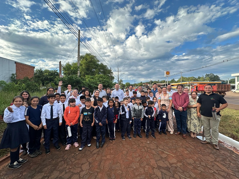 Siguiendo con los avances en infraestructura vial, inauguramos la construcción del empedrado en la entrada a la Escuela Bernardino Caballero de Arroyo Porã, esta obra, que busca mejorar el tránsito y la seguridad de los estudiantes y vecinos de la comunidad, cuenta con una inversión de 160.947.759 guaraníes.