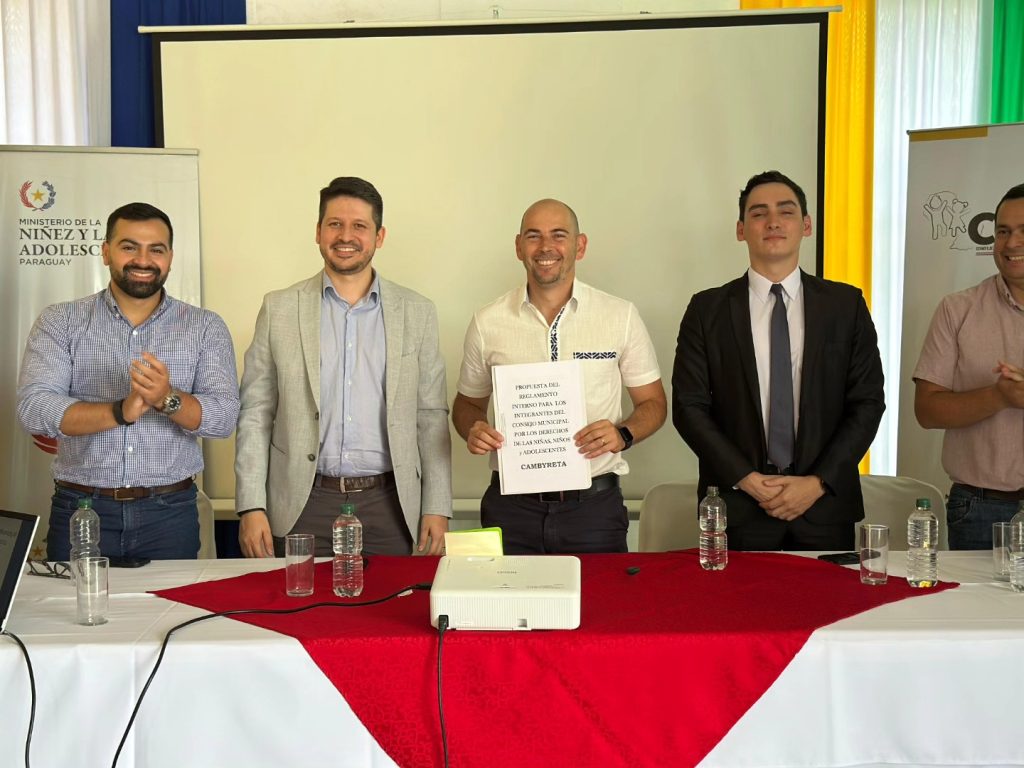 Se dió un gran paso hacia la protección integral de niños y adolescentes del Distrito de Cambyreta, con la conformación del Consejo Municipal de la Niñez y Adolescencia. Esto contó con la presencia del señor Juan Marcelo Fernández, Vice Ministro de esta Cartera; El concejal departamental Diego Cabral, el presidente de la Junta Claudio Chávez y los concejales municipales Néstor Valenzuela, Gladys González y Rosalba Molina.
