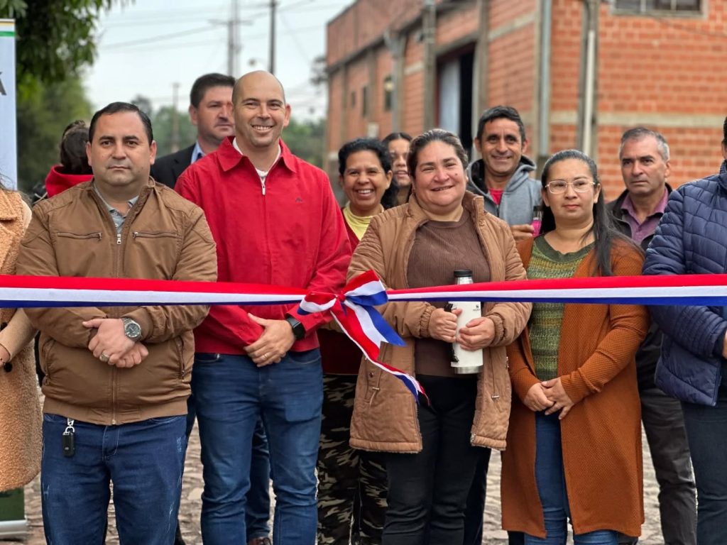 Se realizó la inauguración de un nuevo empedrado en el barrio San Antonio, la obra incluye, pavimento tipo empedrado 1150 m², cordón cuneta 450 ml, badén 46 ml, con una inversión de 101.996.800 Gs.