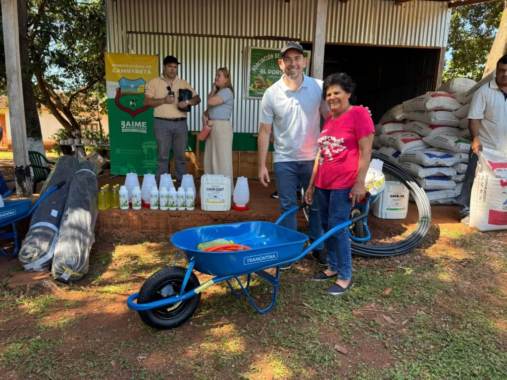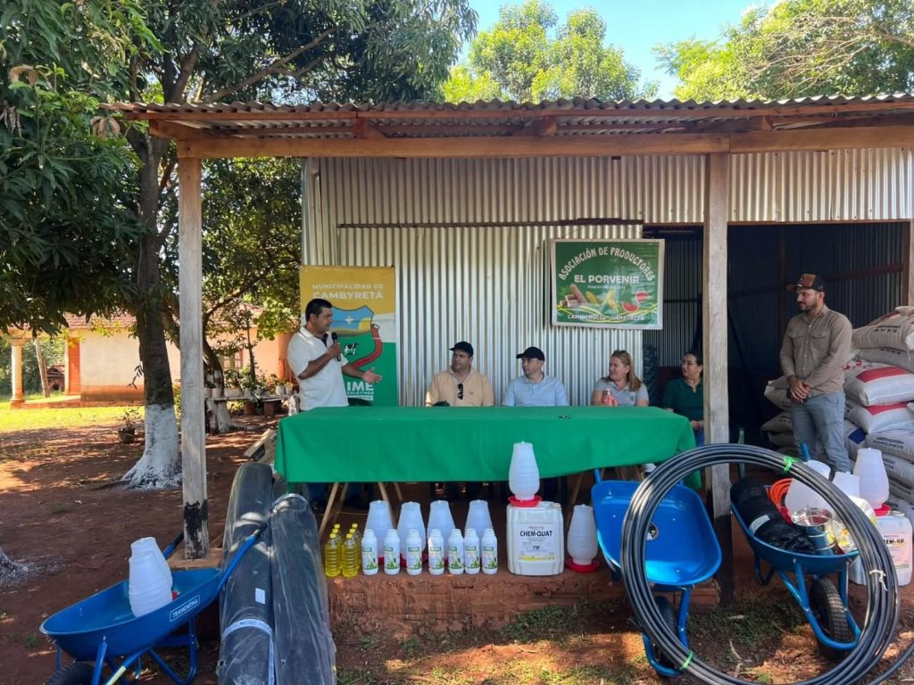 El intendente municipal, Lic. Jaime Hinterleitner, acompañó la entrega de insumos agrícolas a 22 familas de la Asociación El Porvenir, reafirmando el compromiso de la Municipalidad con el desarrollo del sector rural.