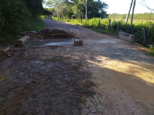 Luego de las reparaciones realizadas en el tubo de hormigón armado, se encuentra habilitada media calzada del tramo del camino empedrado que conduce a la Compañía Jhugua Guazu.