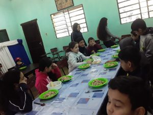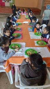 Resaltamos que la provisión del almuerzo es realizada en la modalidad “Cocinando en escuelas”, en la cual se incentiva la mano de obra local, con el servicio a la mesa de alimentos recién preparados y frescos, además del control conjunto in situ al momento de la preparación, tanto de los responsables de cada institución y funcionarios de Municipalidad.