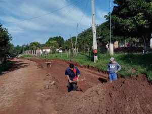 CONTINÚAN LAS OBRAS VIALES DEL EMPEDRADO DE JHUGUA GUAZU