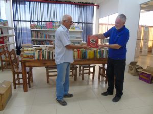 Don Walter Stockl intendente de Loma Plata recibió un lote importante de libros donados por la comunidad Suizo La Rosaleda para la Biblioteca Municipal. Los libros están escritos en idioma alemán.