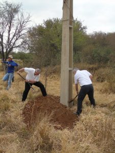 Esta semana arrancaron los trabajos de instalación de la línea trifásica para el Relleno Sanitario Municipal de Loma Plata. De la palada inicial participaron el intendente de la ciudad, Don Walter Stockl y el Presidente de la Cooperativa Chortitzer, Don Gustav Sawatzky.